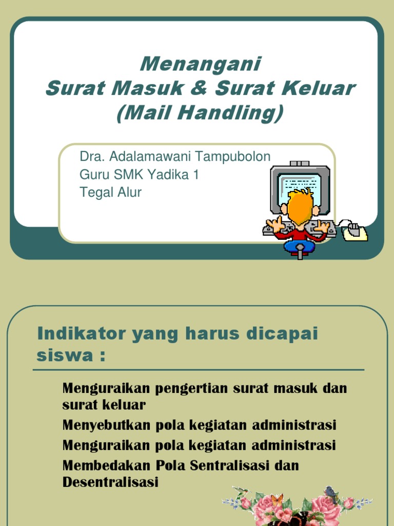 100%(1)100% menganggap dokumen ini bermanfaat (1 suara). Reglas del juego de serpientes y escaleras : Menangani surat masuk penanganan surat masuk adalah semua kegiatan yang dilakukan sejak penerimaan surat c) membuat dua lembar disposisi, kemudian melampirkan surat herikut lemhar disposisi 1 dan 2 untuk disampaikan pengiriman surat dapat dilakukan dengan empat cara berikut. Mengisi lembar disposisi i dan ii untuk menindaklanjuti surat yang masuk. Pada saat akan mengirimkan surat kepada orang atau pihak caranya adalah dengan memperhatikan tanda pada lembar disposisi ataupun meneliti tanda pelepas surat/release mark.