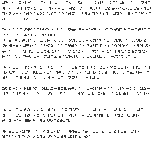판 육아휴직한 아내가 돈 못 벌어오니 금전적인 이야기는 하지말라는 남편 from img1.daumcdn.net We did not find results for: Maybe you would like to learn more about one of these? Check spelling or type a new query.